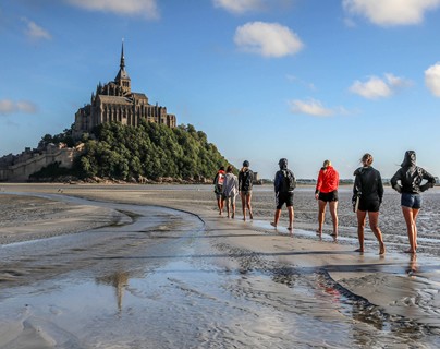 Por la tarde o la mañana siguiente, según el horario de la marea, caminata privada por la bahía con un guía local, descalzo en la arena (o con botas) hasta la isla gemela de Mont Tombelaine (de 4 a 6 km).